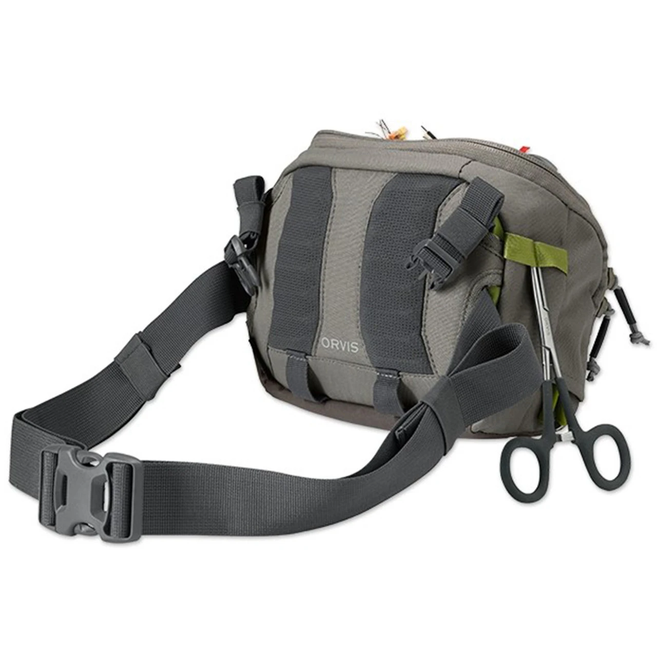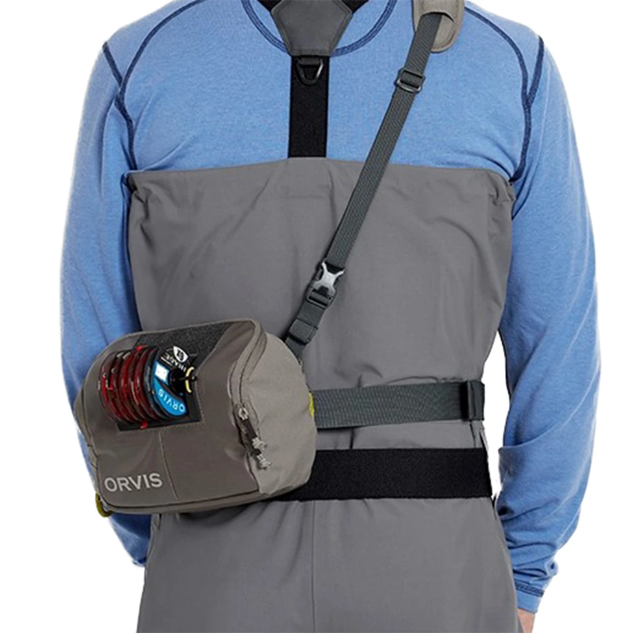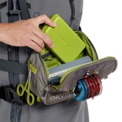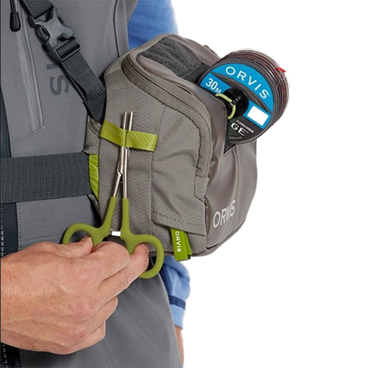 The highly versatile Orvis Chest/Hip Pack is the ultimate grab-and-go pack when you know your target and what they’re eating. This 3L pack can be worn on your hip, slung over your shoulder, or on your chest. It even snaps right on to the front straps of the Bug Out Backpack. Myriad applications for brookies in small streams to bonefish on a flat, this big/little pack is efficient and versatile, yet feature-rich. Tippet Whippet recessed docking station with tippet bar included for an instant, fixed, and fumble-free access for up to 6 spools. Large main compartment with multiple internal pockets. Top fly patch. Side forceps dock and zinger/nipper pass-through port. Removable shoulder strap and hideaway hip strap. 9″W x 6″H x 5″D. 3L/183 cu. in.