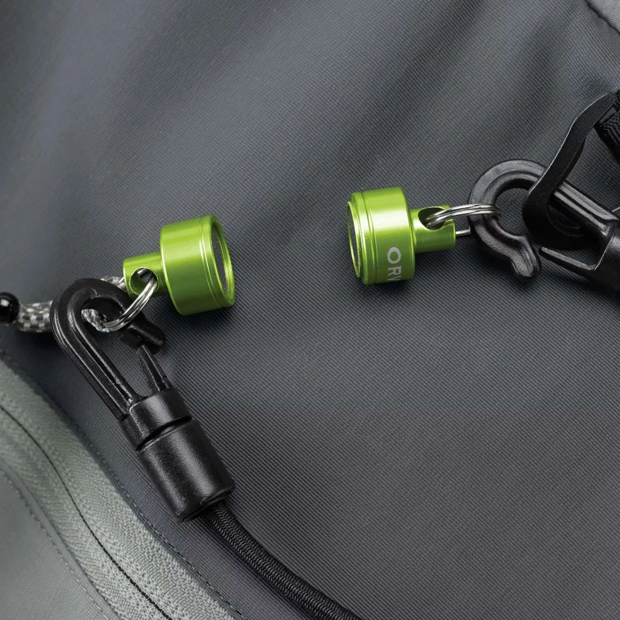 The Orvis Magnetic Net Release features heavy-duty hook-and-loop strap that allows you the option of securing the net by the loop instead of the handle. The upgraded bungee and split ring clips are highly durable and are great for securing your net to a pack or wading vest.