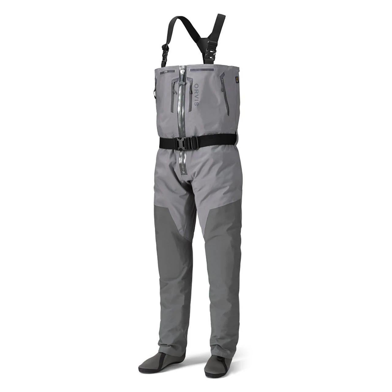 For convenience, comfort, and quick on-and-off, nothing compares to a these zippered PRO fly-fishing waders for men. The convenience issues are obvious, but the wader has to be of the highest quality construction to provide confidence in performance. The PRO Wader is the most durable, abrasion-resistant, and feature-rich wader we’ve ever built. Built with exclusive 100% CORDURA® fabric with four layers in the upper and five layers in the lower, the addition of a TIZIP® Masterseal waterproof zipper tested for more than 200 days, provides a remarkable level of combined convenience and performance. In the upper are split fleece-lined handwarmer pockets, two external storage pockets with YKK AquaGuard® coated zippers, and split Hypalon daisy chain for tool docking. Inside are two internal storage pockets for fly boxes and accessories. Adjustable elastic suspenders with opposing buckles for waist-high conversion. The five-layer lower incorporates removable OrthoLite® X25 knee pads, PU cage mesh gravel guards to eliminate drag and water collection, and anatomically correct neoprene booties. Athletic Fit. In shadow.Wader weighs approximately 52 oz. (medium regular).100% nylon shell with polyurethane membrane. 100% nylon tricot liner. Imported.14 sizes S-XXL including short and long sizes.