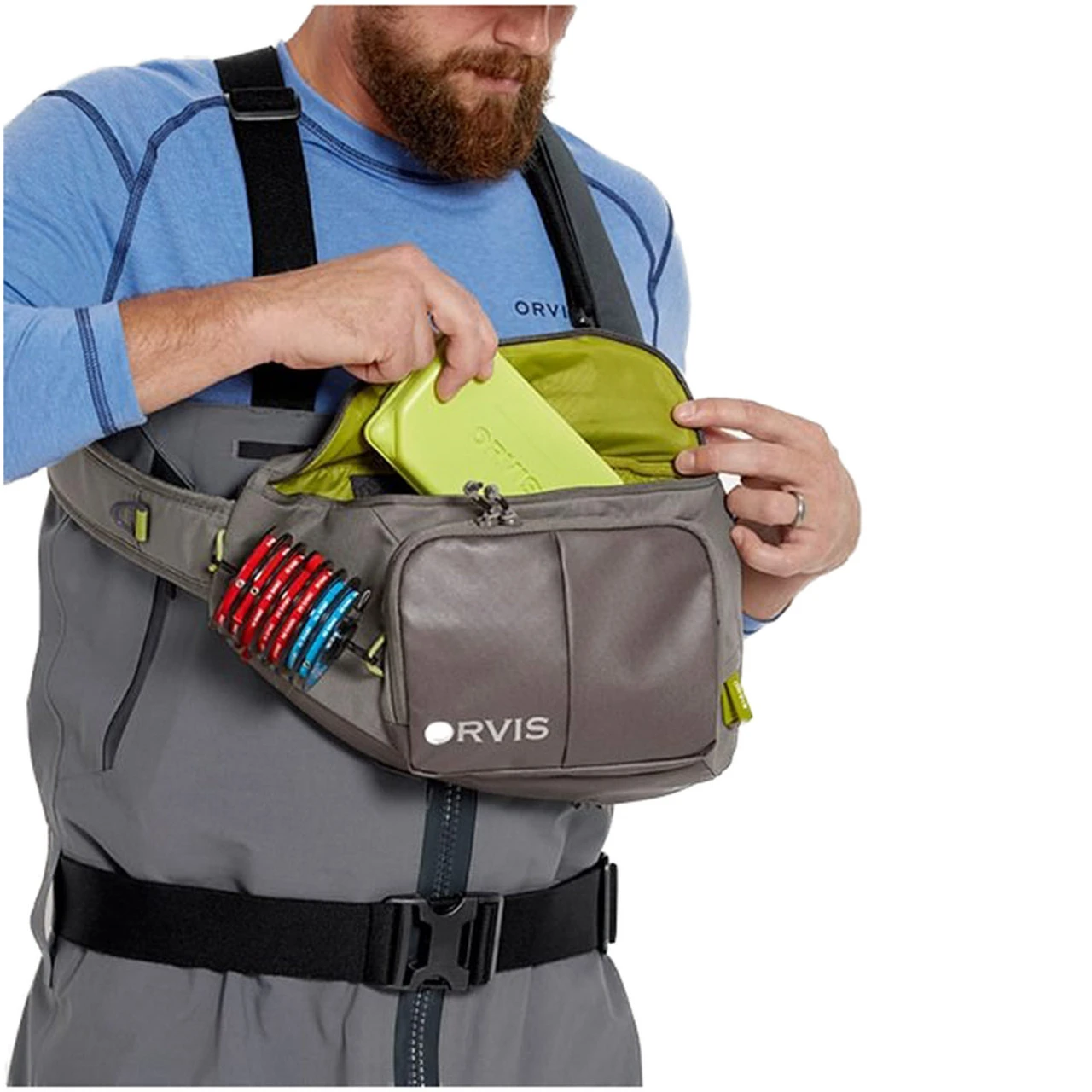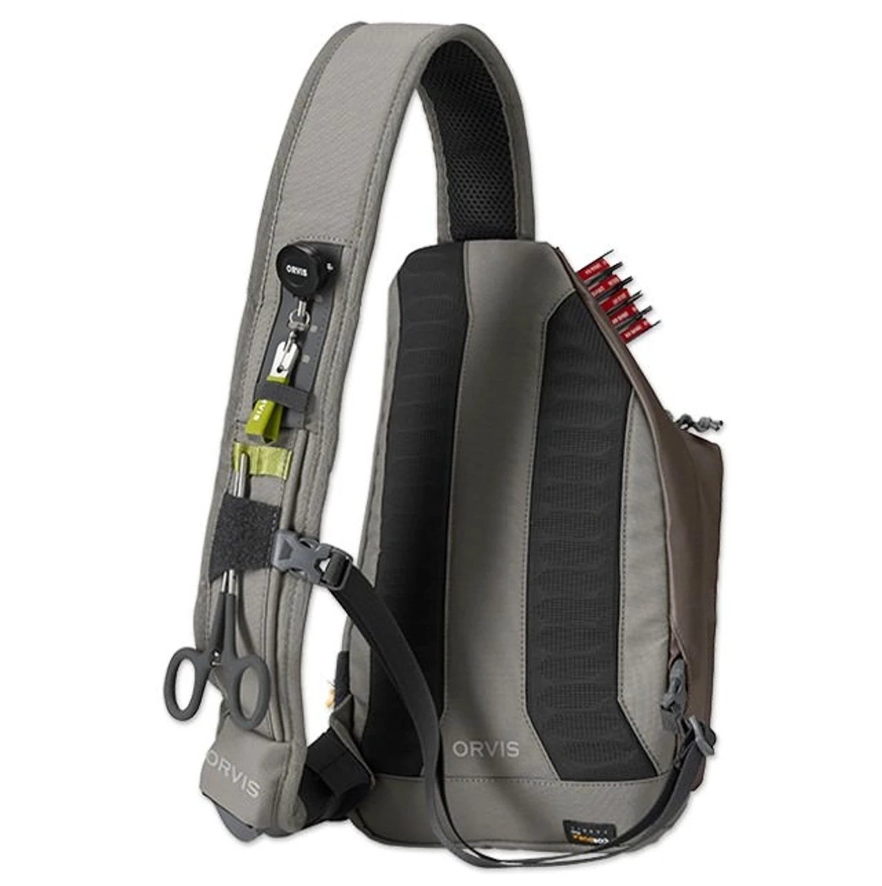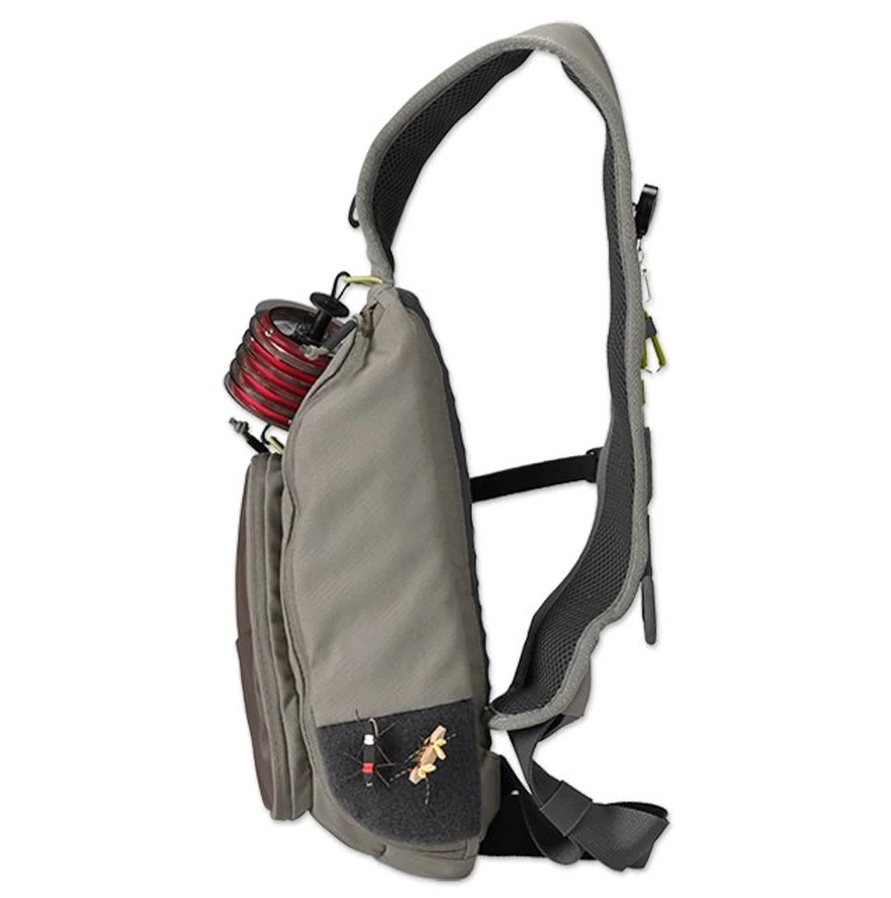 There are times when all it takes is a fly box, a couple of spools of tippet, and a couple of tools when you know where they are and exactly what they’re eating. The 100% recycled ECO CORDURA® Orvis Mini Sling offers simple, intuitive accessibility while staying completely out of your way when fishing. Main body storage pocket with internal drop pockets and a zippered pocket. Smaller main body zippered pocket with organizational drop pockets for smaller items. Loop tippet bar attachment. Front strap zinger docking station, fly patch, forceps attachment point, and rear D-ring for net attachment. Zinger/nipper pass through. Adjustable sternum strap. Left shoulder design frees up casting arm and shoulder. 13¼”L x 8″W x 4″D. 5L/305 cu. in.