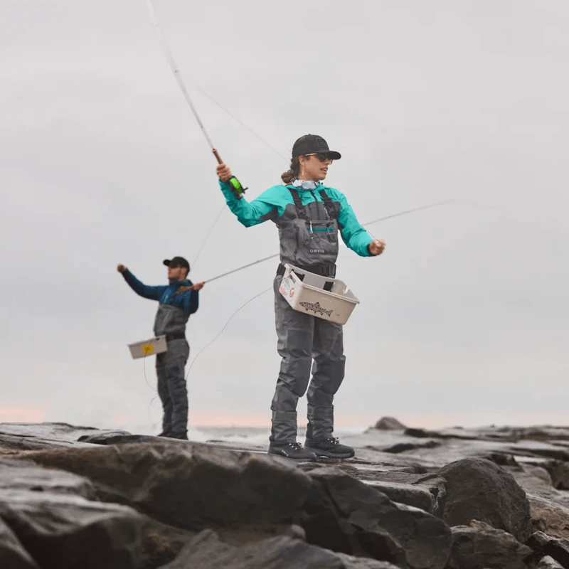 The two-layer midsole has a co-molded ESS plate that provides improved stud retention and torsional stability. The shock-absorbing Phylon midsole improves “river feel” and compresses less than standard EVA midsoles. Orvis partnered with OrthoLite to create a 3D molded X25 insole designed for high-impact sports, delivering maximum comfort and arch support. An industry-first cast PU upper eliminates seams while providing a zoned cage for added stability, grip, and extreme abrasion resistance without the added bulk. The boot is higher cut for ankle support and lined with closed-cell foam. Scratch rubber at the toe cap and heel for abrasion resistance, an oversized heel pull for easier on-and-off, and tightly woven laces reduce broken laces.