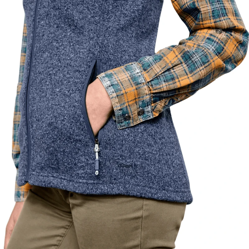 - Soft and cozy recycled sweater fleece and Natulon YKK zippers help divert post-consumer plastic from landfills and waterways