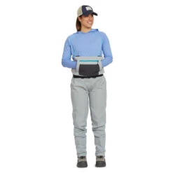 This new Clearwater fly-fishing wader is feature rich and designed specifically for a woman’s body in a modern fit to eliminate traditional bulk. Four-layer waterproof breathable nylon fabric is light yet durable, with a 30K Waterproofness / 8K Breathability rating. Opposing side-release buckles allow for waist-high conversion on warm days. External storage pocket with stretch panel for small items and fly boxes, plus a kangaroo-style handwarmer pocket on the front chest. Updated anatomical neoprene booties with Integrated neoprene gravel guards to reduce water drag and collection. Low-profile seam construction and low-profile belt loops with 1_” webbing belt included. Hook and loop patch on interior pocket to attach Orvis waterproof pocket (8G3H sold separately). In stone. Nylon shell/ polyurethane membrane/nylon tricot liner. Washable. Imported.