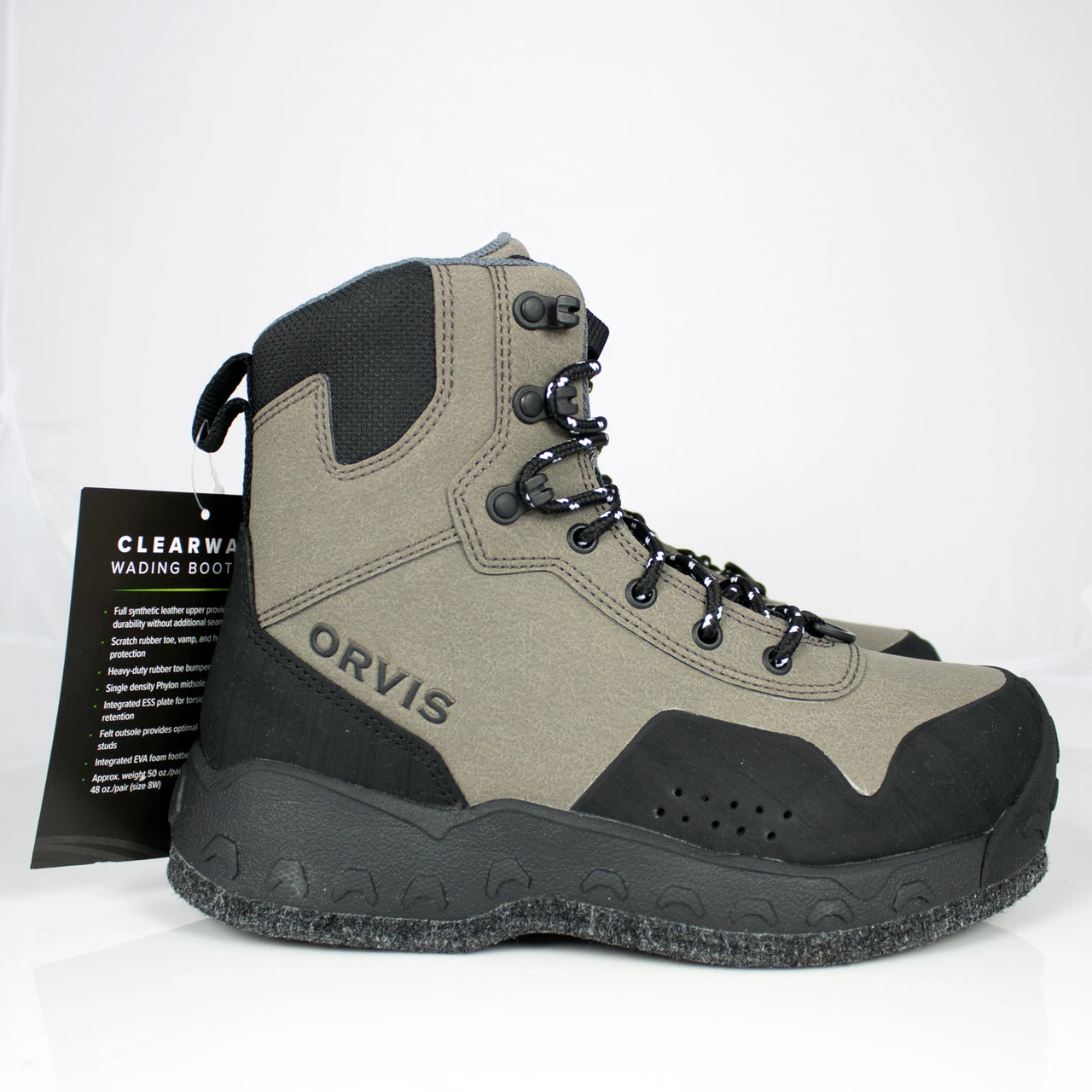 Specifically designed and built for a woman’s foot, the Clearwater felt sole wading boot is made with a full synthetic leather upper that provides comfort and durability without excessive seams. The boot is protected by a scratch rubber toe, vamp, and heel counter for added durability, and a heavy-duty rubber toe bumper protects the foot in tough wading conditions. An integrated EVA foam footbed offers all-day comfort and a wider fit. A phylon midsole and ESS plate provide stability, and excellent stud retention. The rubber outsole option has an aggressive lug design and strategic stud locations for enhanced grip. In gravel. Synthetic leather upper. Imported. Women’s whole sizes 6-11.