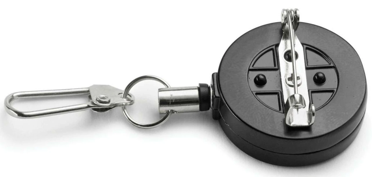 The Orvis Zinger features a 20 in. retractable coated steel cable and heavy-duty pin fastener. This Zinger is used to keep fly fishing tools accessible.